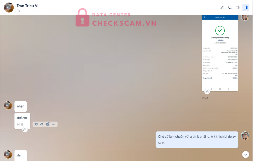 Scammer Alert: TRAN TRIEU VI Reported: November 16, 2024 Scammer Information Full Name: TRAN TRIEU VI Payment Gate: MB bank Payment Account: 01999920112007 Category: Marketplace scams Source: Checkscam Evidence Files Report Description Scam bán mail Comments Your comment Add Comment No comments yet. Be the first to share your experience with this scammer.