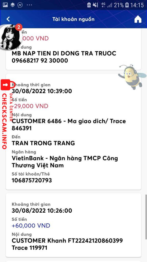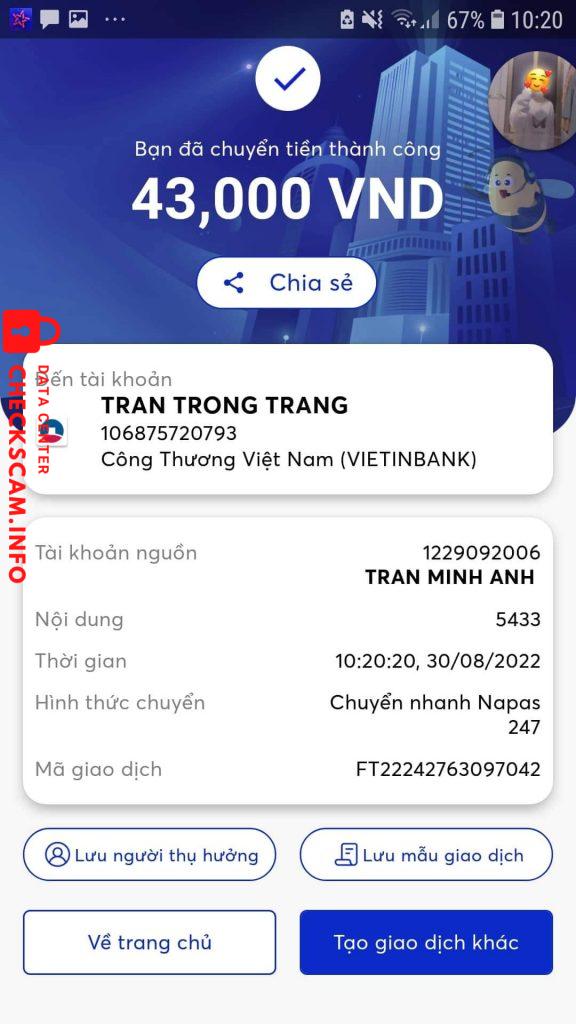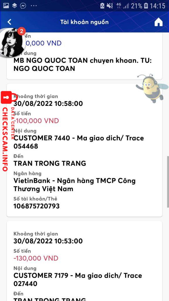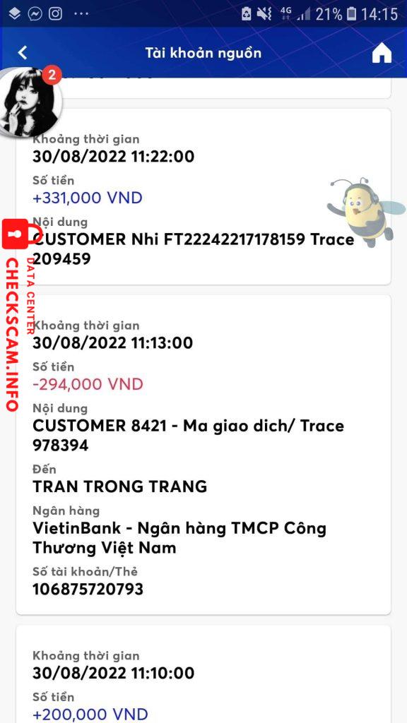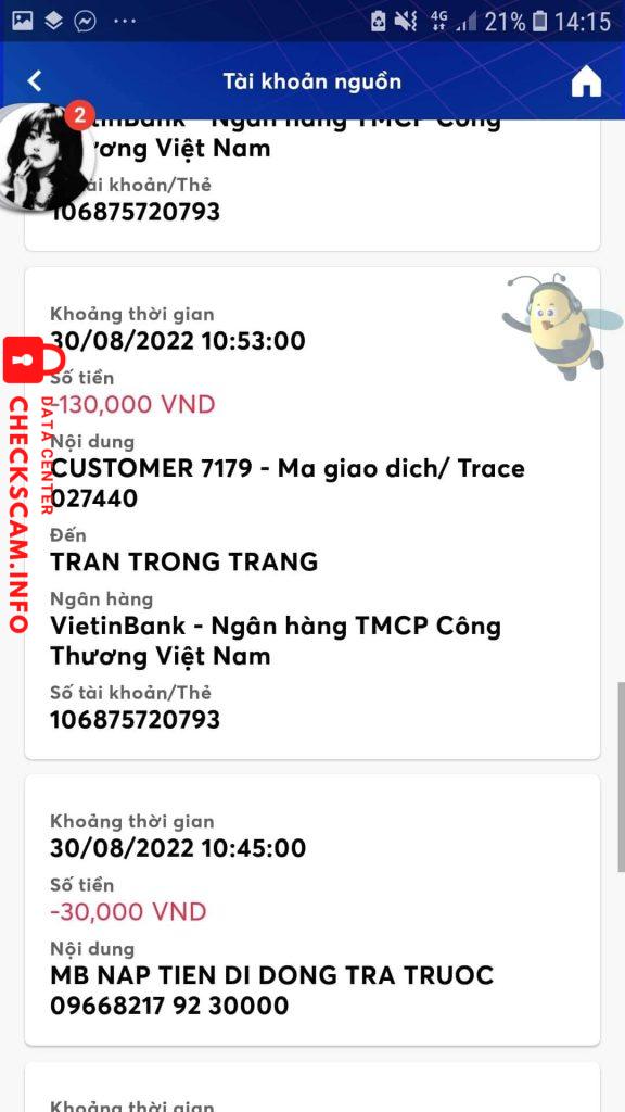 Người này đã lừa bạn tôi vào một website ( có đính kèm hình ảnh khi tố cáo ) và bảo sẽ cho bạn tôi lên ctv khi chuyển khoản cho scam nhưng sau khi chuyển ng kia liền block bạn tôi, mong checkssam xem xét trường hợp này vì chúng tôi vẫn còn là hà sinh nên bị mất một số tiền lớn rất búc xúc trân trọng cảm ơn !