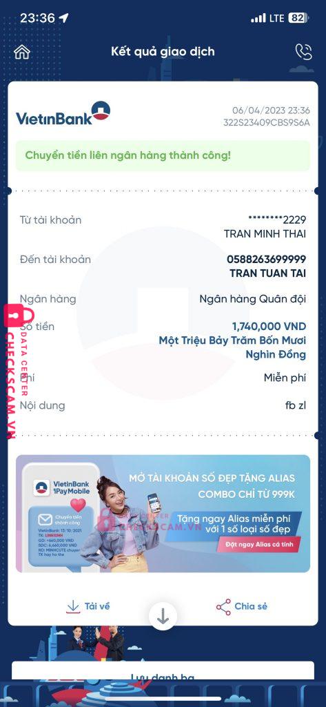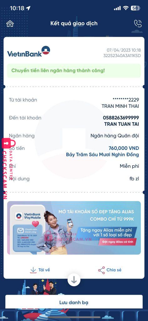 Thằng này bảo làm dịch vụ FB và ZALO. Có lừa của em 2tr5. Làm tích xanh fb và kháng tk zalo bị báo xấu. Em bank cọc cho nó 70% trước, rồi nó báo làm xong rồi, mình tin tưởng nó bank nốt ai ngờ mất hút luôn. Nhắn tin qua telegram nên nó làm kiểu gì mà tự mất hết tin nhắn luôn. Mong AD cho nó lên để ae tránh