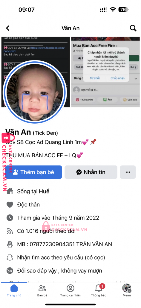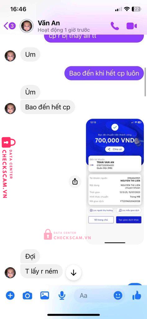 Scammer Alert: TRAN VAN AN Reported: November 16, 2024 Scammer Information Full Name: TRAN VAN AN Phone Number: 0768532608 Payment Gate: MB Payment Account: 07877230904351 Category: Marketplace scams Source: Checkscam Evidence Files Report Description Bank 700k mua acc, bank rồi ném tk mk sai, spam kh rep, đã scam nhiều người Comments Your comment Add Comment No comments yet. Be the first to share your experience with this scammer.