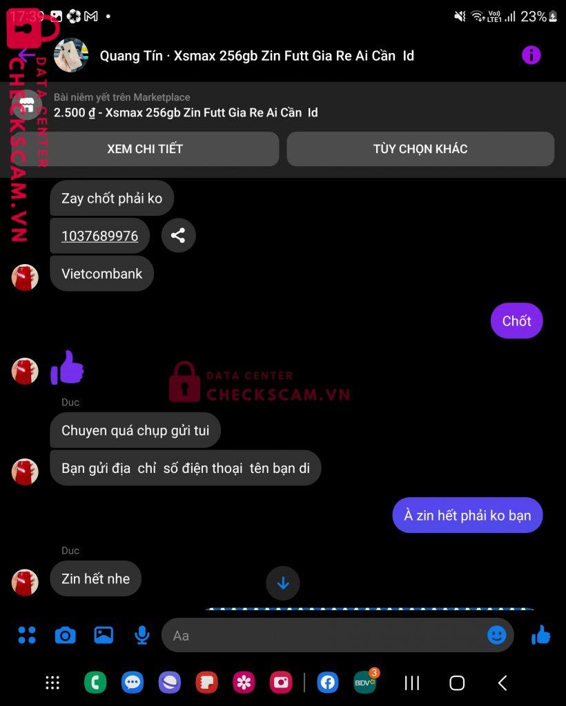 Scammer Alert: Trần Văn Đức Reported: November 16, 2024 Scammer Information Full Name: Trần Văn Đức Payment Gate: Vietcombank Payment Account: 1037689976 Category: Marketplace scams Source: Checkscam Evidence Files Report Description Lừa bán iphone xsm 2tr5 trên mạng, đòi cọc 100k Comments Your comment Add Comment No comments yet. Be the first to share your experience with this scammer.