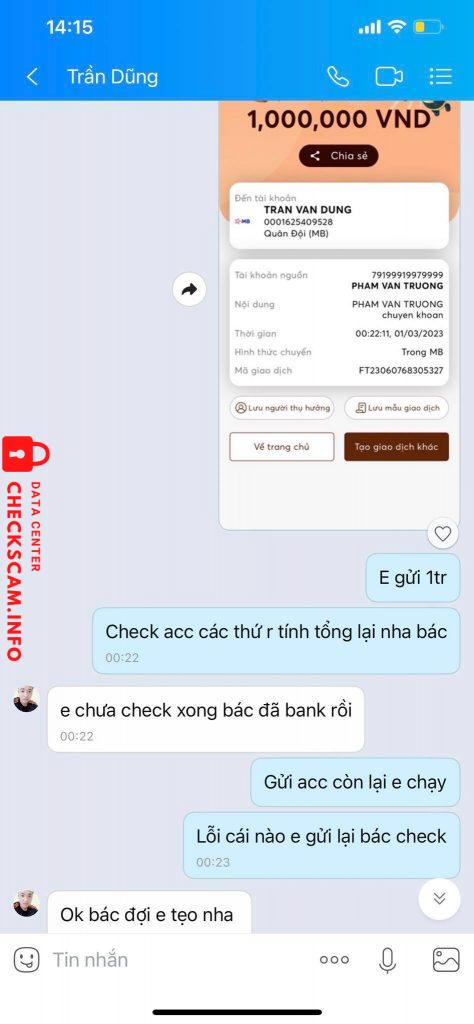 Scammer Alert: Tran Van Dung Reported: November 16, 2024 Scammer Information Full Name: Tran Van Dung Payment Gate: MB Bank Payment Account: 0001625409528 Category: Marketplace scams Source: Checkscam Evidence Files Report Description Bán acc clone fb. nhận tiền xong back acc Comments Your comment Add Comment No comments yet. Be the first to share your experience with this scammer.