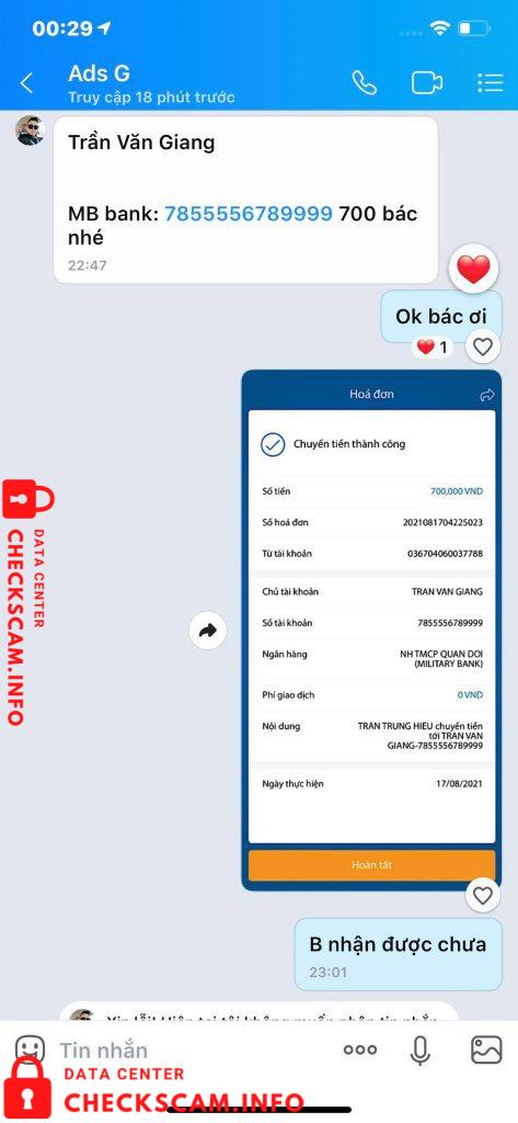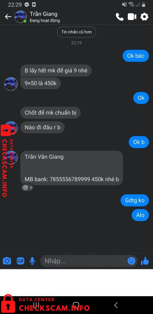 Scammer Alert: Trần Văn Giang Reported: November 16, 2024 Scammer Information Full Name: Trần Văn Giang Payment Gate: Mb Payment Account: 7855556789999 Category: Marketplace scams Source: Checkscam Evidence Files Report Description Scam chúa nhé ae Comments Your comment Add Comment No comments yet. Be the first to share your experience with this scammer.