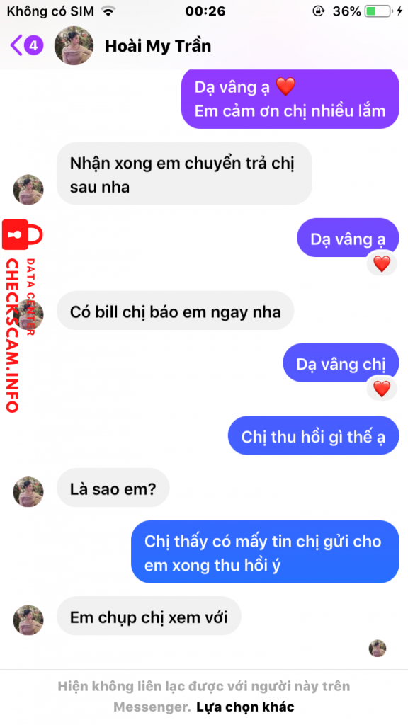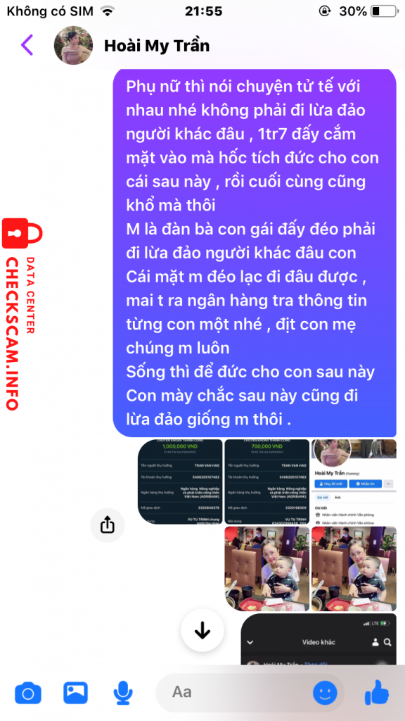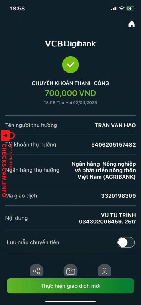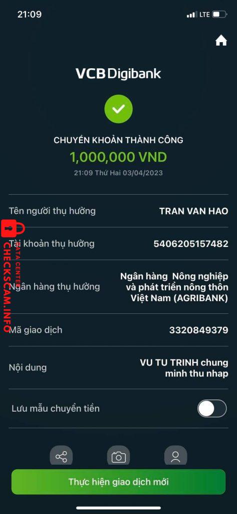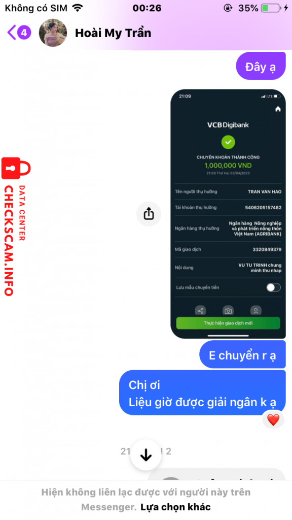 Scammer Alert: TRAN VAN HAO Reported: November 16, 2024 Scammer Information Full Name: TRAN VAN HAO Payment Gate: AGRIBANK Payment Account: 5406205157482 Category: Marketplace scams Source: Checkscam Evidence Files Report Description Mong mọi người cảnh giác với chủ tài khoản này , TRAN VAN HAO đã lừa mình 1tr7 mong mọi người cảnh giác Comments Your comment Add Comment No comments yet. Be the first to share your experience with this scammer.