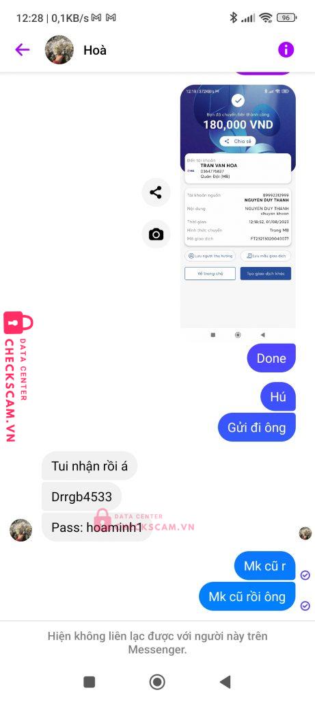 Scammer Alert: TRAN VAN HOA Reported: November 16, 2024 Scammer Information Full Name: TRAN VAN HOA Phone Number: 0364776827 Payment Gate: Mbbank Payment Account: 0364776827 Category: Marketplace scams Source: Checkscam Evidence Files Report Description Scam 15m xu tds Comments Your comment Add Comment No comments yet. Be the first to share your experience with this scammer.