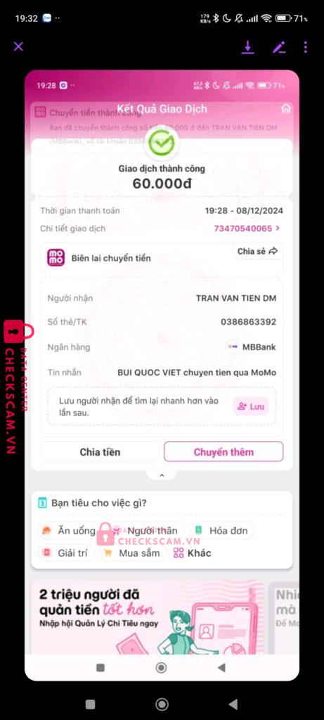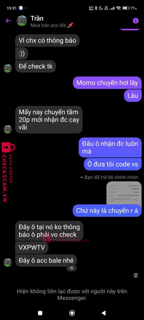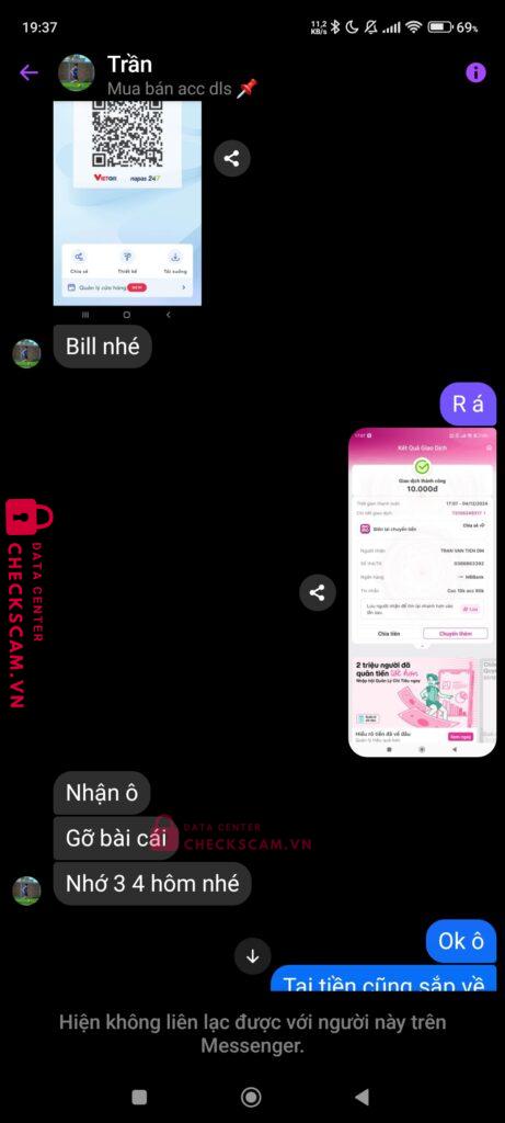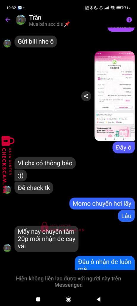 Scammer Alert: Trần Văn Tiến DM Reported: March 7, 2025 Scammer Information Full Name: Trần Văn Tiến DM Payment Gate: MBANK Payment Account: 0386863392 Category: Marketplace scams Source: Checkscam Evidence Files Report Description Lừa đảo mua bán acc dls : 70k Comments Your comment Add Comment No comments yet. Be the first to share your experience with this scammer.