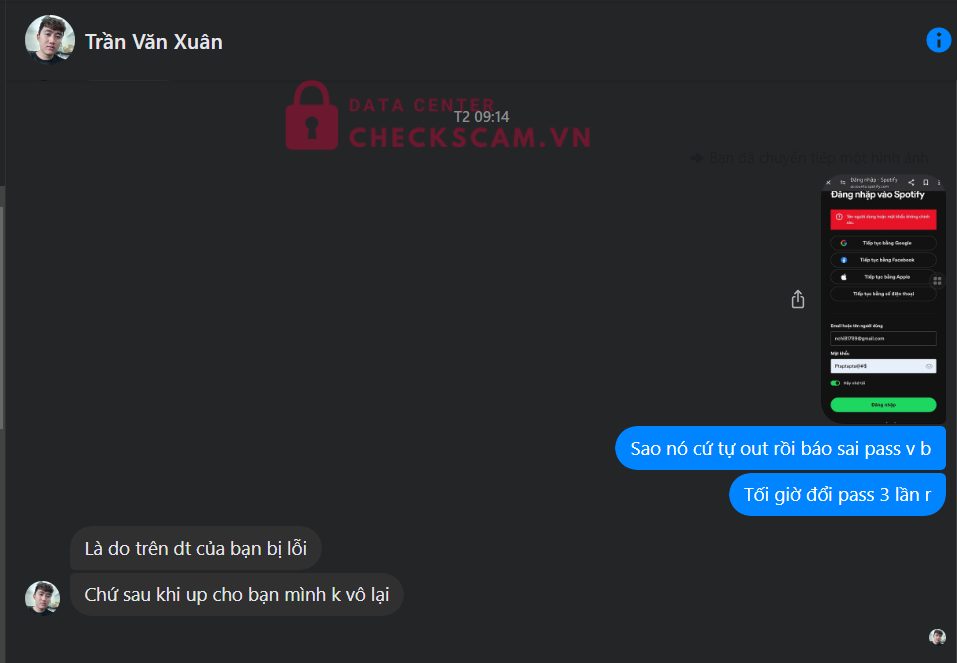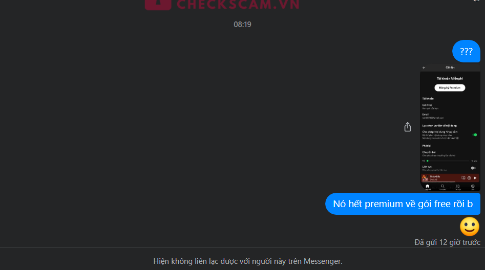 Scammer này lừa up tài khoản spotify premium, sau khi đã up thì mình chuyển khoản. Sau khi chuyển khoản 1 ngày thì mình vẫn dùng được nhưng ngày hôm sau tài khoản báo hết gói premium về gói free. Nhờ ad duyệt để mng tránh, nhớ check kĩ trước khi gd !