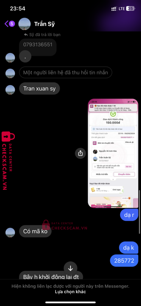 Scammer Alert: Trần Xuân Sỹ Reported: November 16, 2024 Scammer Information Full Name: Trần Xuân Sỹ Payment Gate: Agribank Payment Account: 3615205514052 Category: Marketplace scams Source: Checkscam Evidence Files Report Description e mua acc tiktok nó scam em Comments Your comment Add Comment No comments yet. Be the first to share your experience with this scammer.