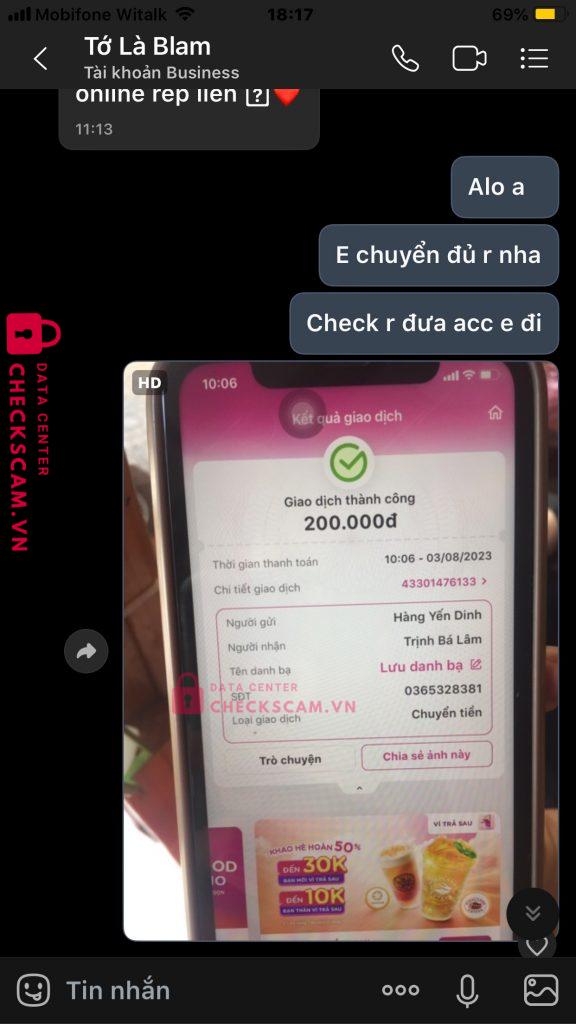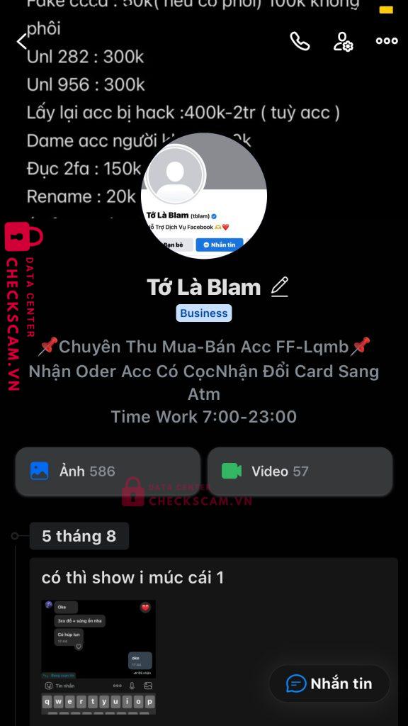 Tôi có chơi 1 tựa game nhm tôi kh có acc để chơi nên tôi tìm đc ng này nhm mà mới chào hỏi để mua acc thì nt có vẻ uy tín thì tôi mới mua acc 3tr3 , nhưng lúc đó tôi chưa có đủ nhiều tiền nên tôi mới bảo ng bán acc là cọc acc từ từ đủ tiền thì đưa. Trong lúc tôi cọc tiền acc cho ng đó thì có nhm biểu hiện kì lạ như: mới cào thẻ đưa cho ng bán acc thì ng bán acc bảo có ng nhập r bị 1 lần thì tôi cx kh tin lắm nhm tôi bị rất nhiều lần. Từ tiền mua acc là 3tr3 tôi bị scam lên tới 4-6tr đồng. Mong ad giúp hộ tôi chứ tôi kh chấp nhận những hành phi lừa đảo tiền bạc cực khổ của ngt kiếm ra hoặc có thẻ là những trẻ e chưa lớn pk xin tiền để dành 1 mua acc game để chơi với bạn bè. Mong ad cố giúp hộ tôi, tôi cảm ơn ad rất nhiều !!! ( lừa đảo lên đên 4-6tr đồng )