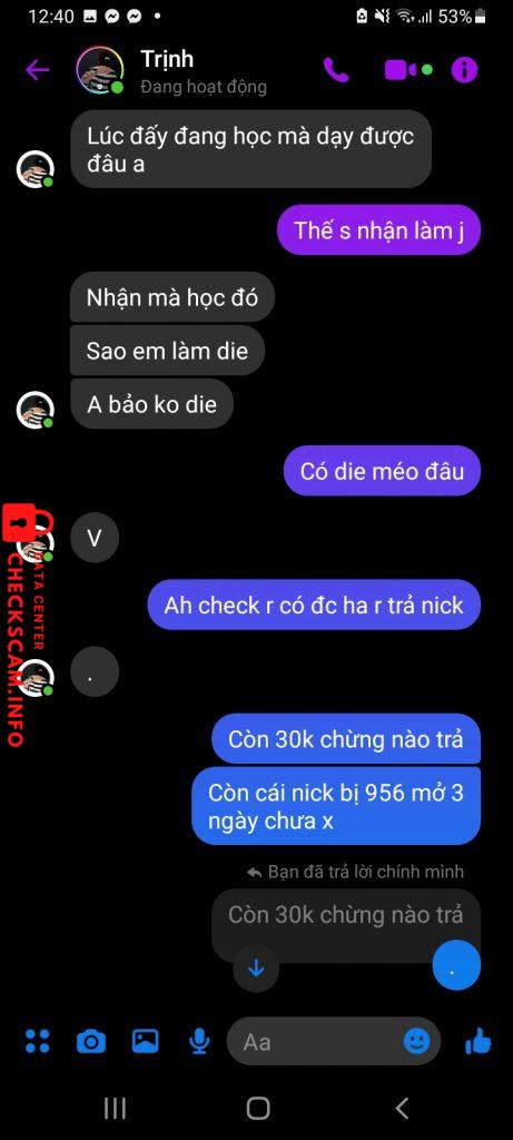 Scammer Alert: Trịnh Đức Duy Reported: November 16, 2024 Scammer Information Full Name: Trịnh Đức Duy Phone Number: 0393657618 Payment Gate: Momo Payment Account: 0393657618 Category: Marketplace scams Source: Checkscam Evidence Files Report Description Ae né nó scam nhận dạy học viên dvfb 250k nhận về chã thấy dậy j tới key hma còn k cấp. Hiện tại nó đang mở cái wed dvfb: hoangbao.club ae né. Comments Your comment Add Comment No comments yet. Be the first to share your experience with this scammer.