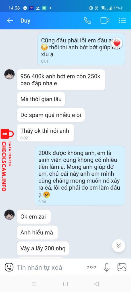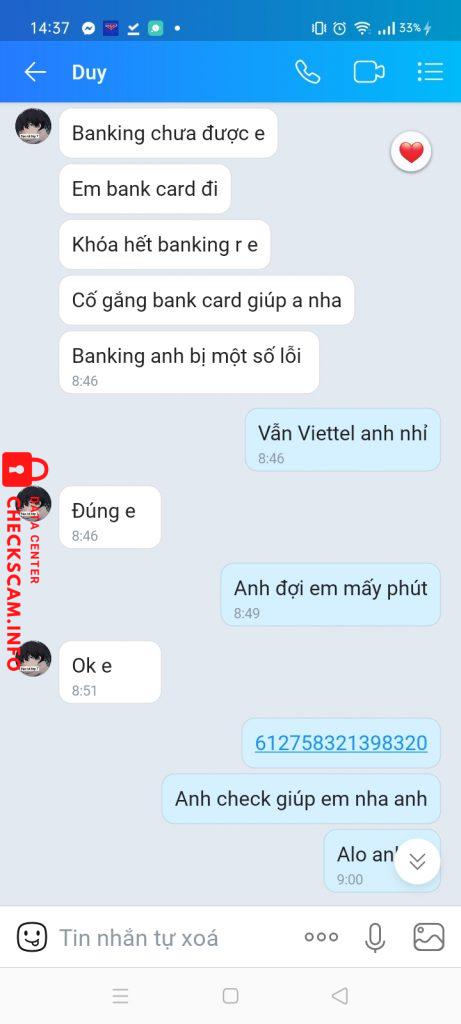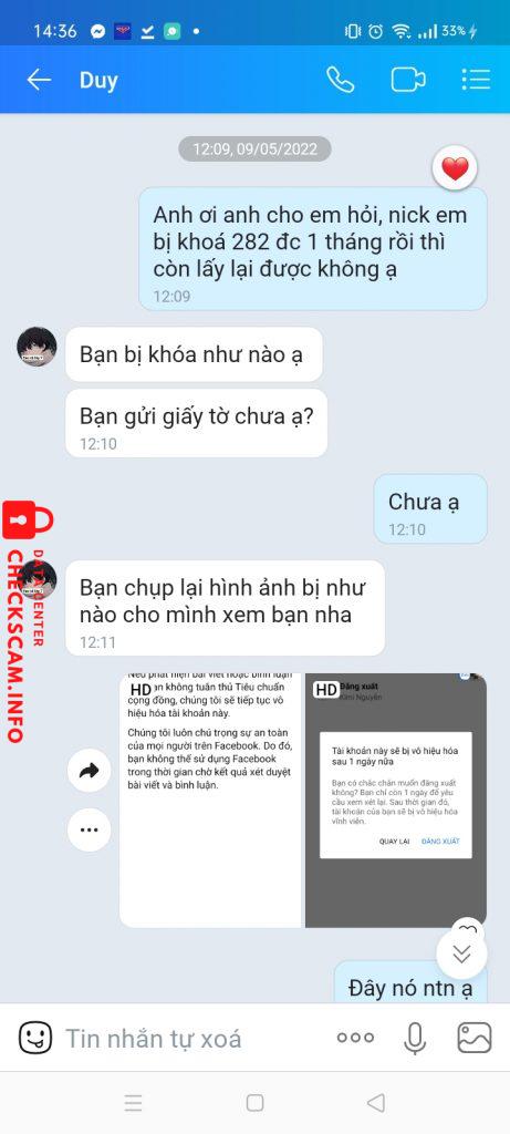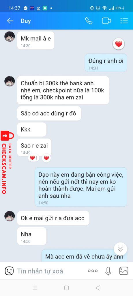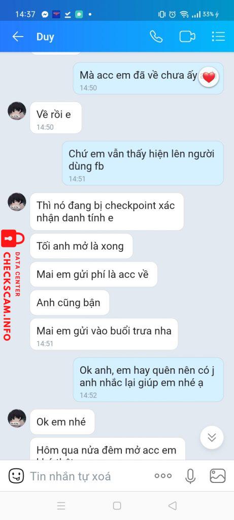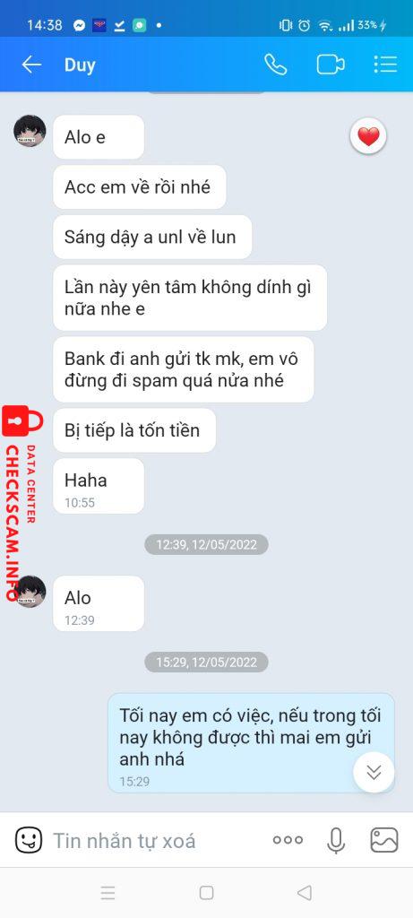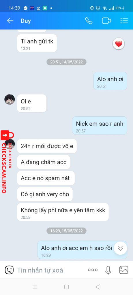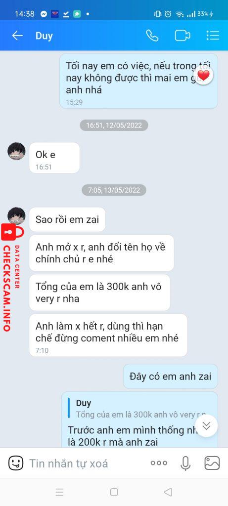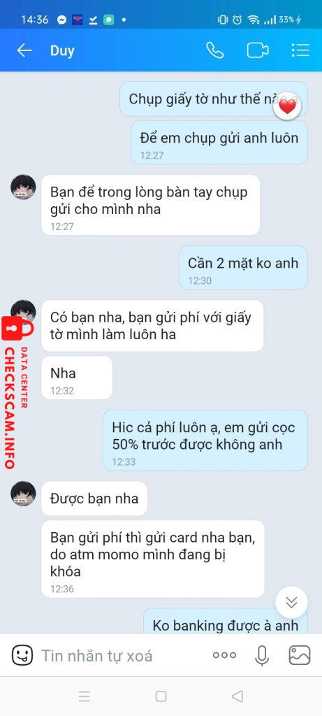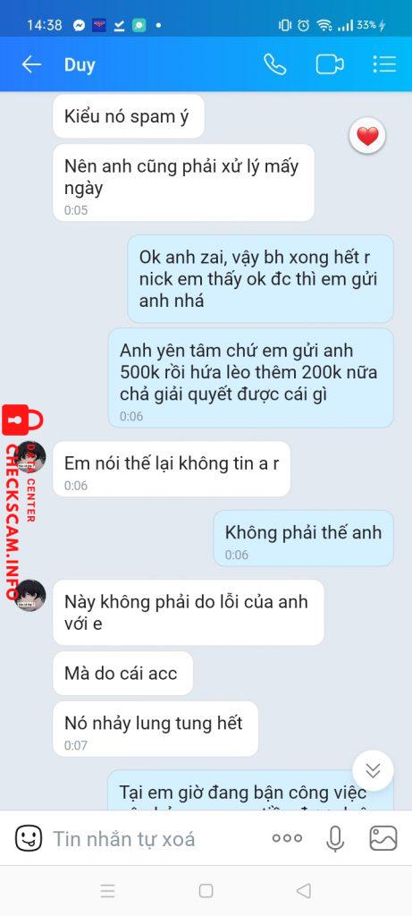 Scammer Alert: Trịnh Đức Duy Reported: November 16, 2024 Scammer Information Full Name: Trịnh Đức Duy Phone Number: 0392165084 Payment Gate: Gửi card Payment Account: 0392165084 Category: Marketplace scams Source: Checkscam Evidence Files Report Description Nhận tiền mở khoá acc fb xong chặn Zalo và chặn số điện thoại Comments Your comment Add Comment No comments yet. Be the first to share your experience with this scammer.