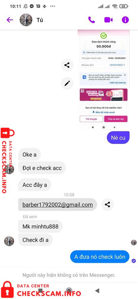 Scammer Alert: Trịnh Minh Tú Reported: November 16, 2024 Scammer Information Full Name: Trịnh Minh Tú Phone Number: 0369286769 Payment Gate: momo Payment Account: 0369286769 Category: Marketplace scams Source: Checkscam Evidence Files Report Description Ae nè cu tú này ra nhà . Có 50k mà em nó củng liếm luôn thì chịu Comments Your comment Add Comment No comments yet. Be the first to share your experience with this scammer.
