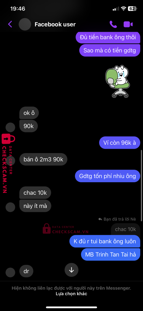 Scammer Alert: TRINH TAN TAI Reported: November 16, 2024 Scammer Information Full Name: TRINH TAN TAI Payment Gate: MB Bank Payment Account: 996122001 Category: Marketplace scams Source: Checkscam Evidence Files Report Description Lừa đảo mua bạc làng lá Comments Your comment Add Comment No comments yet. Be the first to share your experience with this scammer.