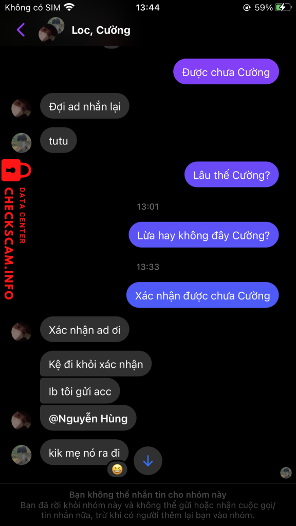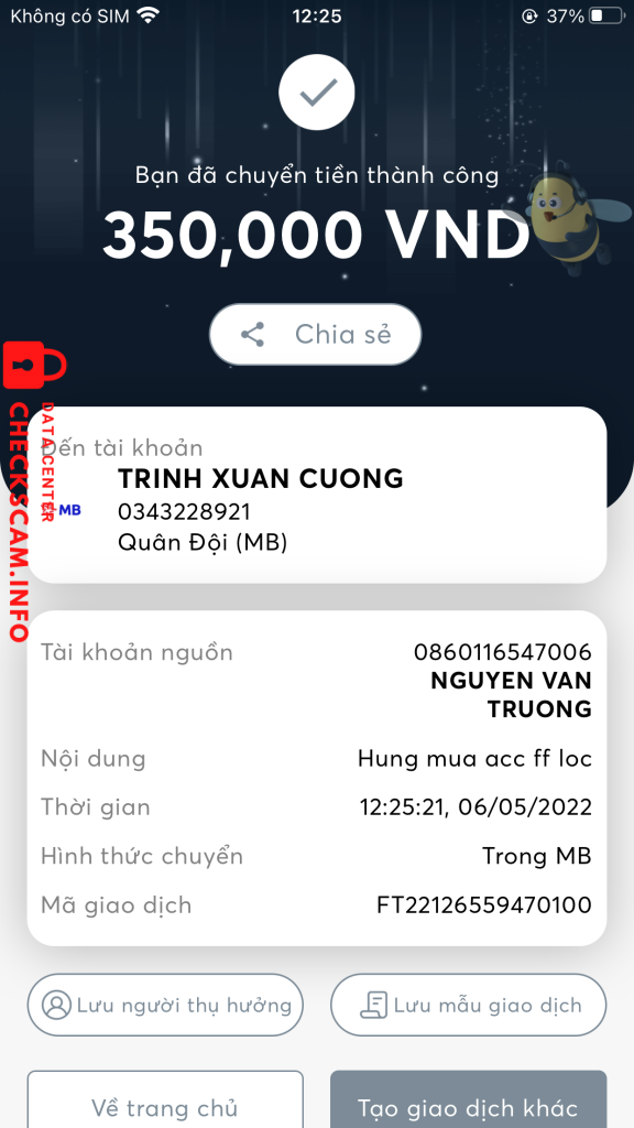 Scammer Alert: Trịnh Xuân Cường Reported: November 16, 2024 Scammer Information Full Name: Trịnh Xuân Cường Payment Gate: Mb bank Payment Account: 0343228921 Category: Marketplace scams Source: Checkscam Evidence Files Report Description Thằng Cường trung gian lừa đảo Comments Your comment Add Comment No comments yet. Be the first to share your experience with this scammer.