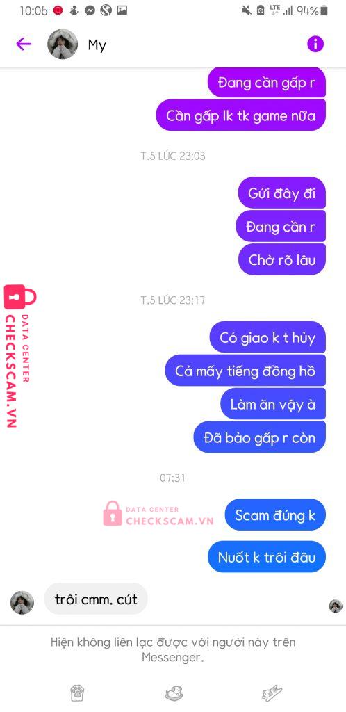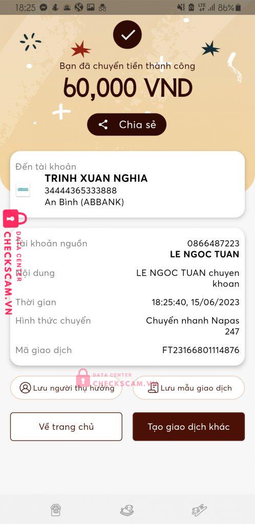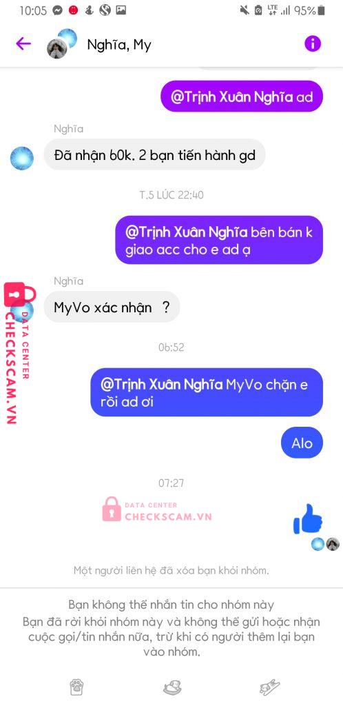 Scammer Alert: TRINH XUAN NGHIA (Fake) Reported: November 16, 2024 Scammer Information Full Name: TRINH XUAN NGHIA (Fake) Payment Gate: ABBank Payment Account: 34444365333888 Category: Marketplace scams Source: Checkscam Evidence Files Report Description Gdtt cả bên trung gian lẫn bên bán scam Comments Your comment Add Comment No comments yet. Be the first to share your experience with this scammer.