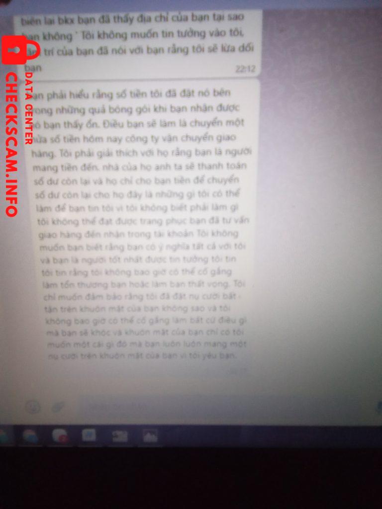 Chủ số điện thoại này: 0986154914 chính là kẻ lừa đảo. Người này đã cùng đồng bọn lên kế hoạch lừa đảo thông qua ứng dụng whatsapp( hoặc cũng có thể là chính anh ta đã tạo hoặc liên hệ với số quốc gia khác số điện thoại(+2348049974469 và +2349128602504) đã lừa đảo với nạn nhân là đã gửi một gói hàng từ nước ngoài chuyển về và bọn chúng giả dạng là một nhân viên sân bay nói rằng đã thấy tiền từ nước ngoài chuyển về bảo nạn nhân chuyển khoản ngân hàng 15 triệu vào tài khoản TRUONG VAN BAY) để nhận hàng và sau 30′ chúng gọi lại và nói với người bị hại là thấy tiền nước ngoài($) và bảo phạt 75 triệu đồng( theo quy định pháp luật đây là hành vi vi phạm pháp luật dù cho đó là nhân viên sân bay). Bọn chúng đã lừa đảo nhưng vì thiếu hiểu biết nên tôi đã đến ngân hàng chậm trễ sau đó nhưng vẫn không được hoàn và chưa báo công an. Nay biết checkscam.vnr nên đăng lên mọi người cảnh giác