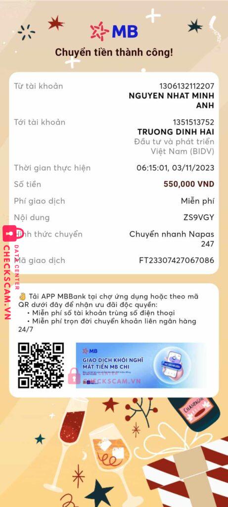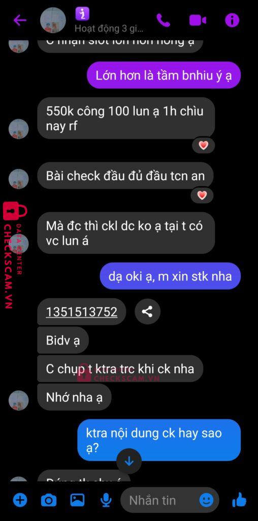 Scammer Alert: TRUONG DINH HAI Reported: November 16, 2024 Scammer Information Full Name: TRUONG DINH HAI Payment Gate: BIDV Payment Account: 1351513752 Category: Marketplace scams Source: Checkscam Evidence Files Report Description Nó nhờ mình ck hộ 550k, có bài check legit đầy đủ, mỗi tội ck xong mình mới thấy bạn chủ acc đó bảo bị hack Comments Your comment Add Comment No comments yet. Be the first to share your experience with this scammer.