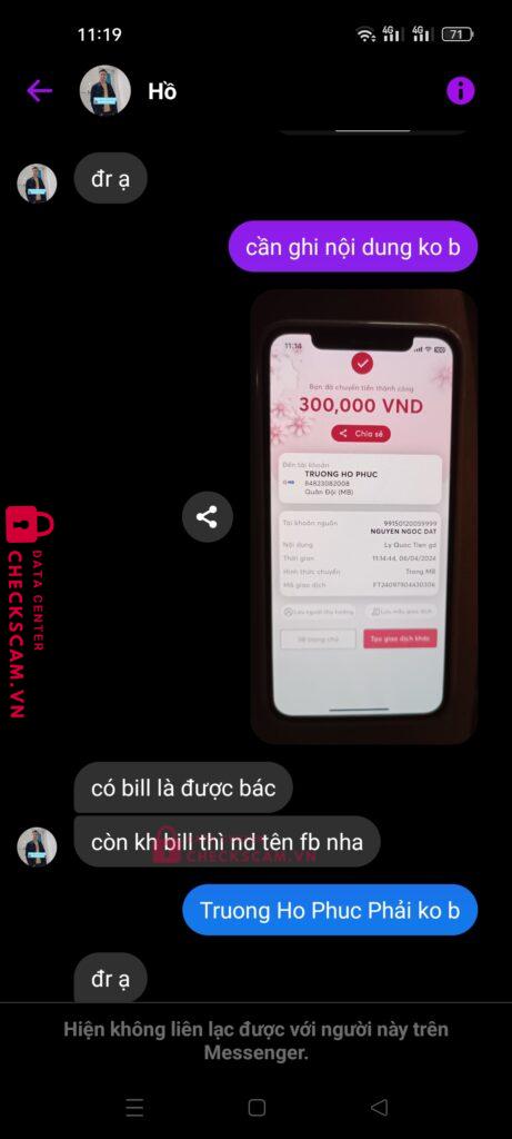 Scammer Alert: TRUONG HO PHUC Reported: November 16, 2024 Scammer Information Full Name: TRUONG HO PHUC Payment Gate: MB BANK Payment Account: 84823082008 Category: Marketplace scams Source: Checkscam Evidence Files Report Description Comments Your comment Add Comment No comments yet. Be the first to share your experience with this scammer.