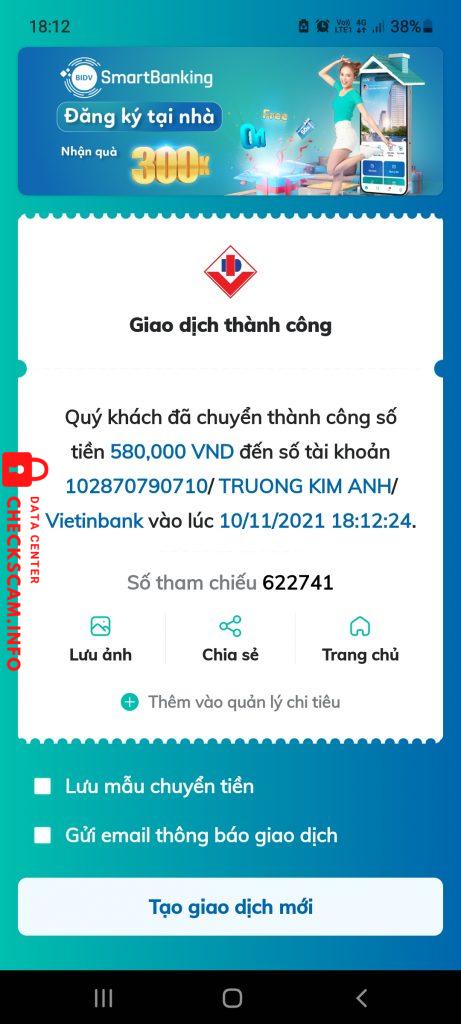 Scammer Alert: Trương Kim Ánh Reported: November 16, 2024 Scammer Information Full Name: Trương Kim Ánh Payment Gate: Viettinbank Payment Account: 102870790710 Category: Marketplace scams Source: Checkscam Evidence Files Report Description Lừa đào qua Zalo và Facebook Comments Your comment Add Comment No comments yet. Be the first to share your experience with this scammer.