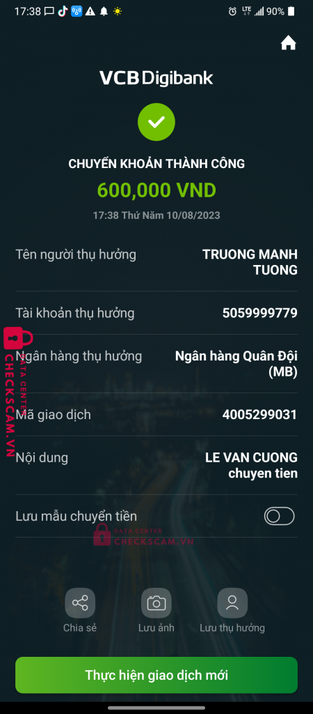 Scammer Alert: Truong manh tuong Reported: November 16, 2024 Scammer Information Full Name: Truong manh tuong Payment Gate: Mb bank Payment Account: 50599997799 Category: Marketplace scams Source: Checkscam Evidence Files Report Description Lừa đảo tình thương con nhỏ Comments Your comment Add Comment No comments yet. Be the first to share your experience with this scammer.