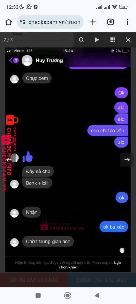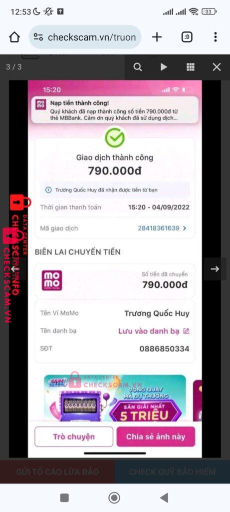 Scammer Alert: Trương Quốc Huy Reported: November 16, 2024 Scammer Information Full Name: Trương Quốc Huy Payment Gate: Momo Payment Account: 0886850334 Category: Marketplace scams Source: Checkscam Evidence Files Report Description Người này đã lừa đảo tôi Comments Your comment Add Comment No comments yet. Be the first to share your experience with this scammer.