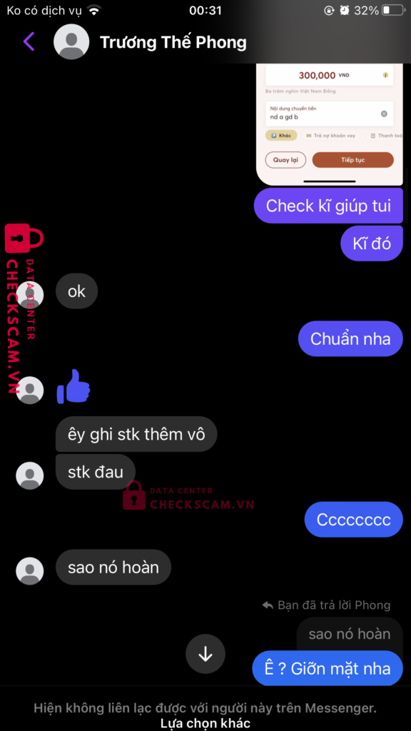 Bạn này bán mình token dra 300, có thoả thuận cọc 150, trade, ck 150 xòn giao dịch, ban đầu ck 150 bạn có kêu mình là nhập nội dung: nd a gd b, mình đọc k kĩ thế là ck sai nd, và kêu mình ck 150 lại để hoàn, với nd: a dg b stk, mà mình hỏi chép y chang hả, bn ấy kêu đr, xong mình ck thì kêu, stk là stk của bn á sao k cho vào, thế là mất 150, bn ấy kêu mình ck bill 3 300 để hoàn bill 1-2 300, với nd: a gd b, mình hỏi kĩ ch ok ch thì bn ok và like, đến lúc mình ck xong thì kêu thêm stk vào, thế là mình mất trắng 600, bảo mình nói chuyện với tổng giao dịch viên và định lừa mình thêm 300 nữa nma mình đaz thật sự tỉnh.