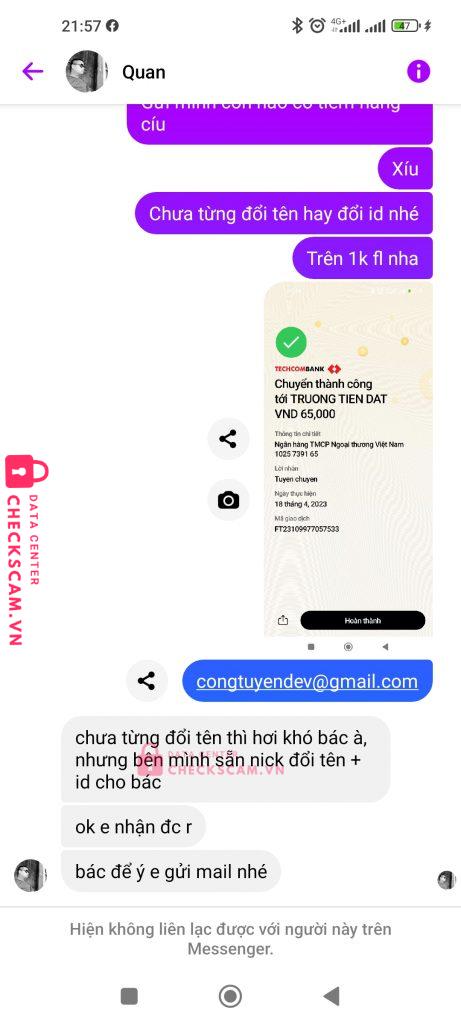 Scammer Alert: Truong Tien Dat Reported: November 16, 2024 Scammer Information Full Name: Truong Tien Dat Payment Gate: VCB Payment Account: 1025739165 Category: Marketplace scams Source: Checkscam Evidence Files Report Description Y hệt Comments Your comment Add Comment No comments yet. Be the first to share your experience with this scammer.
