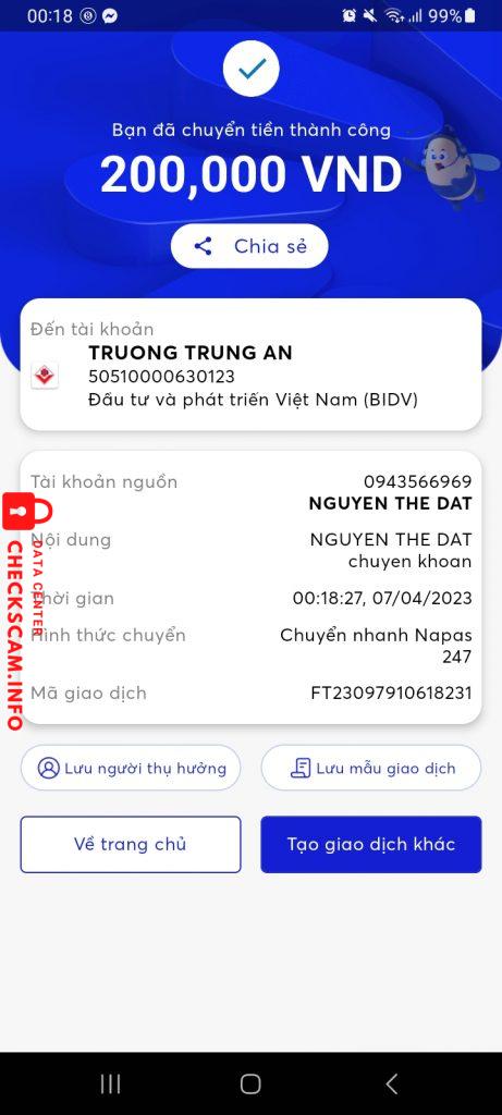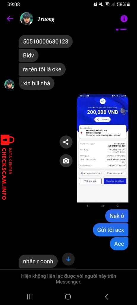 Scammer Alert: TRUONG TRUNG AN Reported: November 16, 2024 Scammer Information Full Name: TRUONG TRUNG AN Payment Gate: BIDV Payment Account: 50510000630123 Category: Marketplace scams Source: Checkscam Evidence Files Report Description Lừa đảo acc có thông tin bảo kê trọn đời Comments Your comment Add Comment No comments yet. Be the first to share your experience with this scammer.