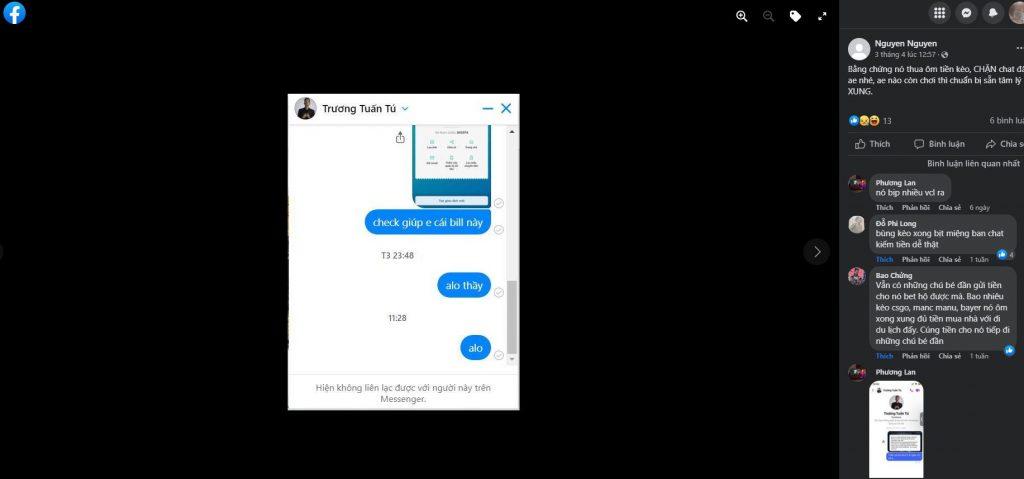 Thằng này chuyên ra các kèo xs, tôm cua cá, TFT 58, lên thuyền bet bóng. Khi lượng mắt xem càng đông, mà có ai cmt bảo nó scam ( xung ) thì lập tức mod của chúng nó sẽ ban vĩnh viễn, xóa khỏ discord. Mỗi người chủ yếu bị nó lừa 100-500k, ai nhiều thì chục triệu, hoặc vài triệu