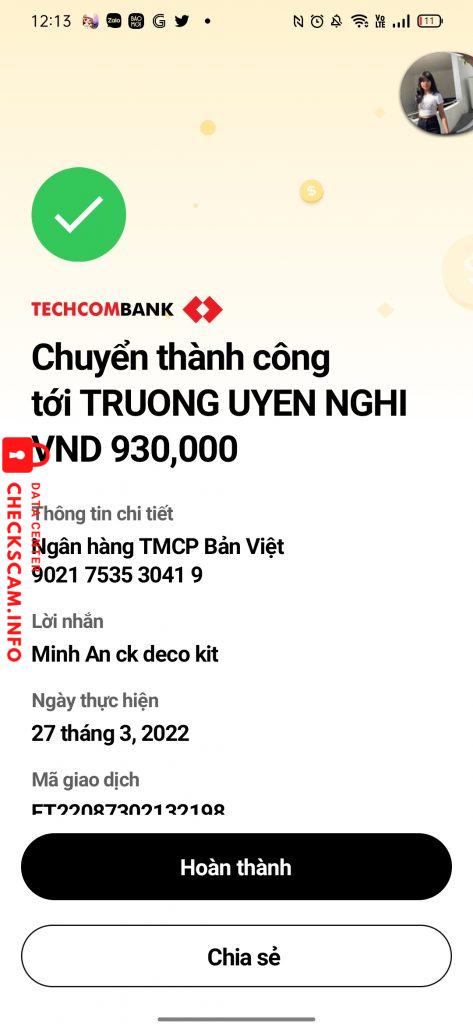 Scammer Alert: TRUONG UYEN NGHI Reported: November 16, 2024 Scammer Information Full Name: TRUONG UYEN NGHI Payment Gate: Viet Capital Bank Payment Account: 9021753530419 Category: Marketplace scams Source: Checkscam Evidence Files Report Description lừa đảo ck Comments Your comment Add Comment No comments yet. Be the first to share your experience with this scammer.
