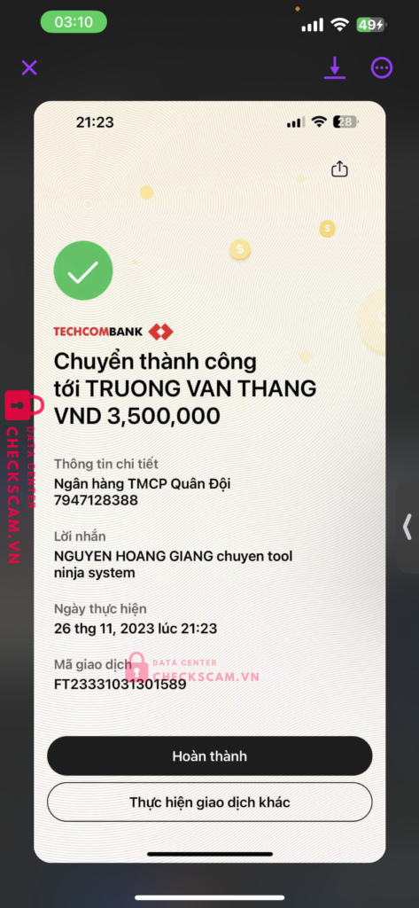 Lừa đảo, lừa cung cấp phần mềm, hỗ trợ cho dùng 1-2 hôm thì huỷ key của phần mềm, rồi quay ra trốn chánh trách nghiệm, hơn 10tr mà quay lại ko được cái gì, bài học đáng nhớ, TRƯƠNG VĂN THẮNG MB