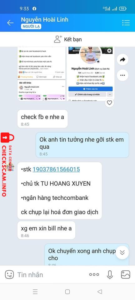 Lừa 400k giờ phải cầm fb mới phốt no .nó bảo gỡi tiền trước nó lấy lại tk fb bị hack cho . Gỡi tiền xong nó chặn zalo ko nghe sdt lạ anh né nó ra nhe để tránh gặp bị lừa giống mình