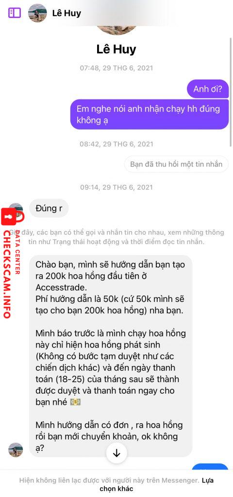 Lừa đảo qua accesstrade nha mng, bank tiền cho nó xong mất hút cmn luôn, số của nó 0921833003, cả số 0386765129 nữa, Ưng Lê Huy Trường ĐH Bách Khoa HCM nhé ạ, mong ad duyệt sớm ạ!