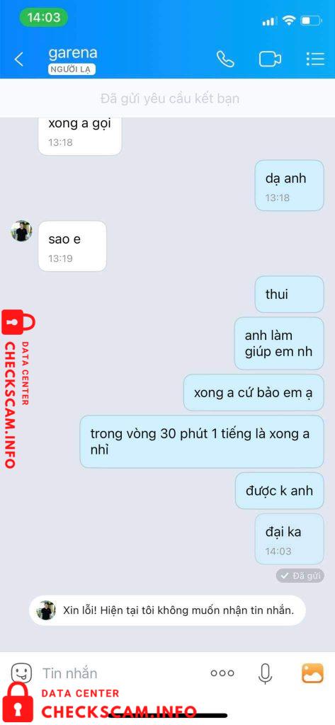 Scammer Alert: Vang Van Hao Reported: November 16, 2024 Scammer Information Full Name: Vang Van Hao Phone Number: 0378912132 Payment Gate: MBBank Payment Account: 9999996865555 Category: Marketplace scams Source: Checkscam Evidence Files Report Description Nhận gỡ thông tin acc nhưng sau khi bank thì block Comments Your comment Add Comment No comments yet. Be the first to share your experience with this scammer.