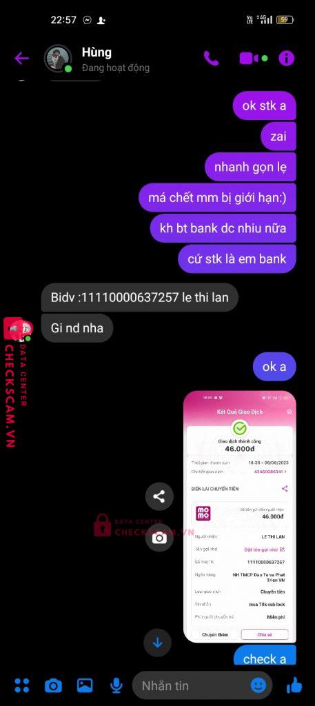 Scammer Alert: Việt Hùng Reported: November 16, 2024 Scammer Information Full Name: Việt Hùng Payment Gate: BIDV Payment Account: 11110000637257 Category: Marketplace scams Source: Checkscam Evidence Files Report Description Fake admin+trang web fake cọc admin Comments Your comment Add Comment No comments yet. Be the first to share your experience with this scammer.