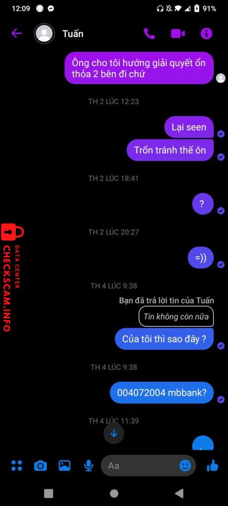 Scammer Alert: Võ Anh Tuấn Reported: November 16, 2024 Scammer Information Full Name: Võ Anh Tuấn Payment Gate: MbBank Payment Account: 7676767676716 Category: Marketplace scams Source: Checkscam Evidence Files Report Description Scam Comments Your comment Add Comment No comments yet. Be the first to share your experience with this scammer.