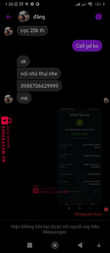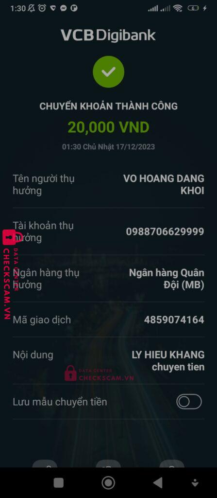 Scammer Alert: VO HOANG DANG KHOI Reported: November 16, 2024 Scammer Information Full Name: VO HOANG DANG KHOI Payment Gate: MB Bank Payment Account: 0988706629999 Category: Marketplace scams Source: Checkscam Evidence Files Report Description Thằng sv Đăng Khôi bán tool . Đã chuyển tiền xong thì lại block . Đúng là sv đói khát Comments Your comment Add Comment No comments yet. Be the first to share your experience with this scammer.