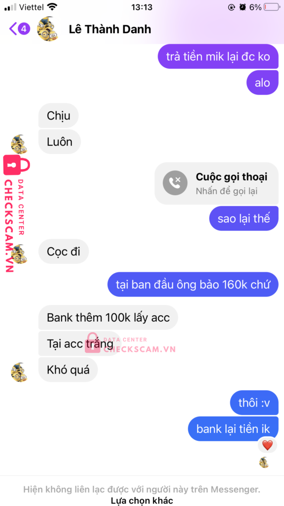 Scammer Alert: Vo Hoang Phuc Reported: November 16, 2024 Scammer Information Full Name: Vo Hoang Phuc Payment Gate: MB bank Payment Account: 0911328994 Category: Marketplace scams Source: Checkscam Evidence Files Report Description tên này đã lừa đảo rồi lại còn muốn lừa đảo thêm Comments Your comment Add Comment No comments yet. Be the first to share your experience with this scammer.