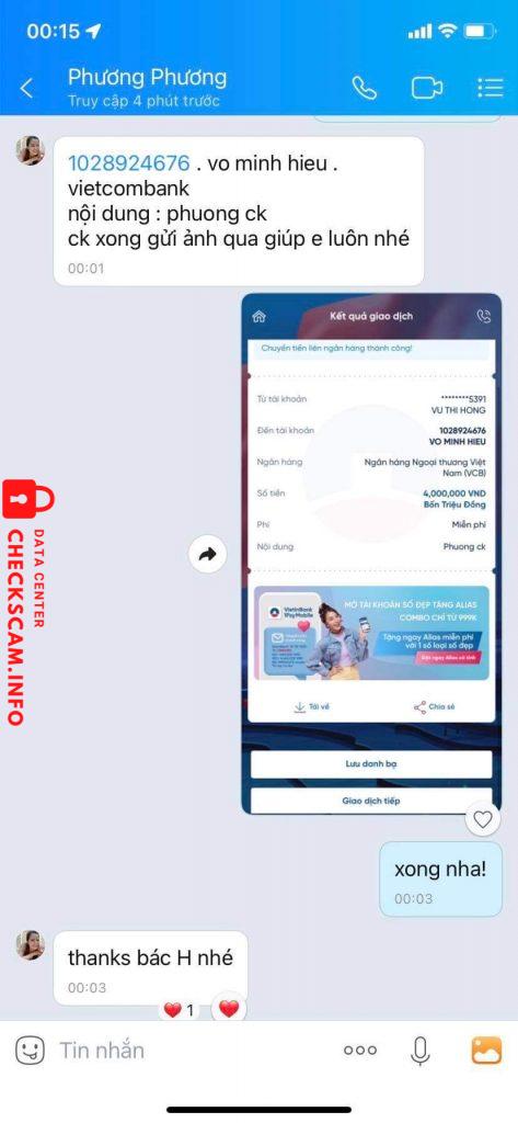 Scammer Alert: VO MINH HIEU Reported: November 16, 2024 Scammer Information Full Name: VO MINH HIEU Payment Gate: Vietcombank Payment Account: 1028924676 Category: Marketplace scams Source: Checkscam Evidence Files Report Description Lập zalo giả mạo để lừa ck Comments Your comment Add Comment No comments yet. Be the first to share your experience with this scammer.