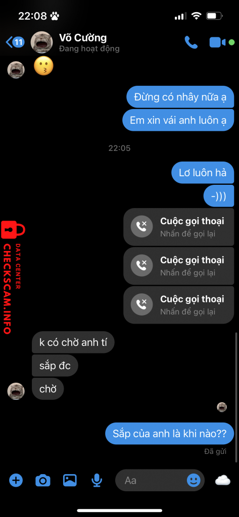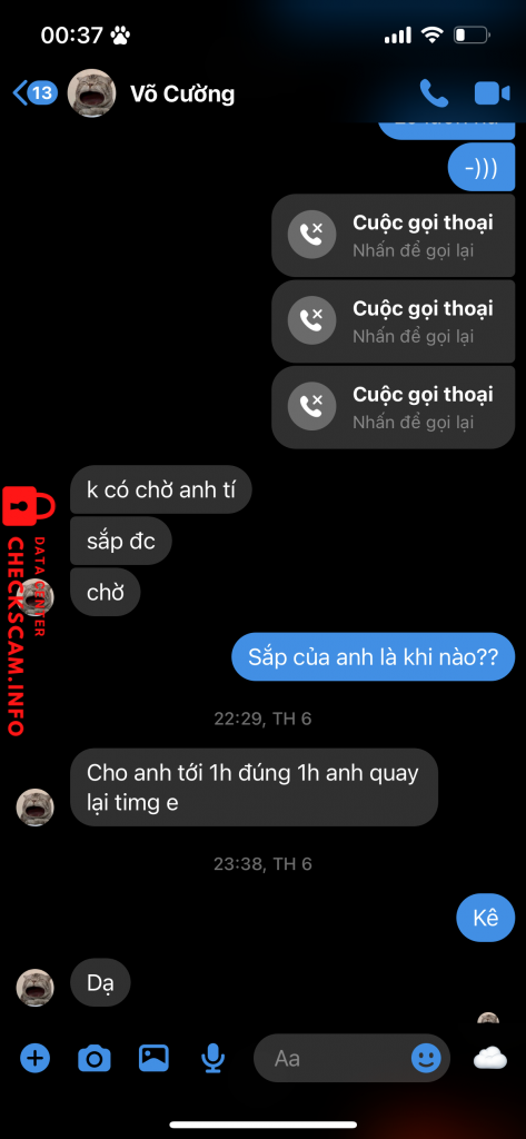 Scammer Alert: Võ Nhựt Cường Reported: November 16, 2024 Scammer Information Full Name: Võ Nhựt Cường Phone Number: 01203295919 Payment Gate: MoMo Payment Account: 01203295919 Category: Marketplace scams Source: Checkscam Evidence Files Report Description Mượn 2tr3 . Trả được 1tr. Còn 1tr3 thì khoá fb mất liên lạc. Bọn mình trao đổi bank qua momo. Không có stk bạn này. Comments Your comment Add Comment No comments yet. Be the first to share your experience with this scammer.
