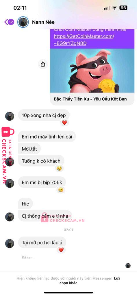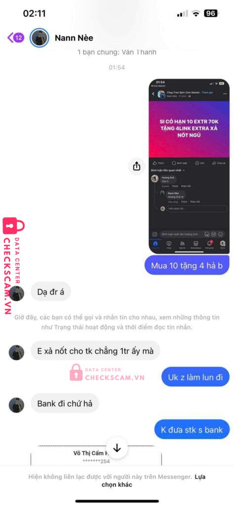 Scammer Alert: Võ Thị Cẩm Hồng Reported: November 16, 2024 Scammer Information Full Name: Võ Thị Cẩm Hồng Payment Gate: HD BANK Payment Account: 0928821254 Category: Marketplace scams Source: Checkscam Evidence Files Report Description Chuyên Scam Nhận Chạy Link Spin Chuyển Khoản Xog Block Comments Your comment Add Comment No comments yet. Be the first to share your experience with this scammer.