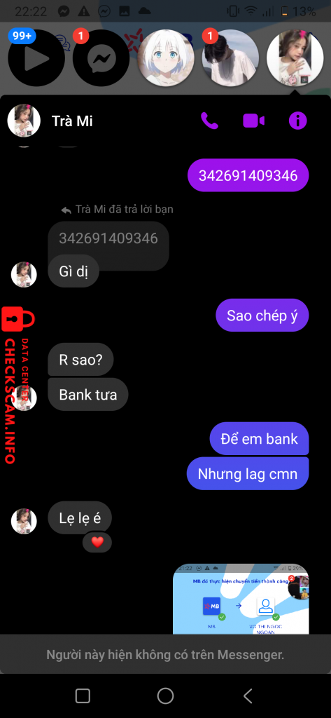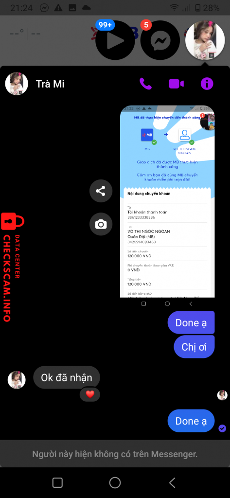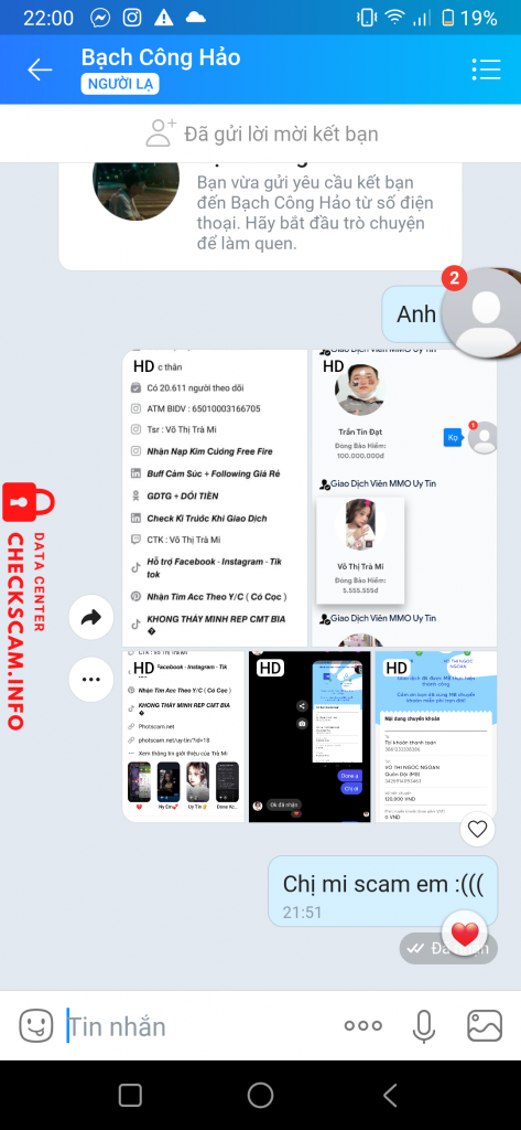 Scammer Alert: Võ Thị Trà Mi Reported: November 16, 2024 Scammer Information Full Name: Võ Thị Trà Mi Phone Number: 0986284462 Payment Gate: BIDV Payment Account: 65010003166705 Category: Marketplace scams Source: Checkscam Evidence Files Report Description Lừa đảo Comments Your comment Add Comment No comments yet. Be the first to share your experience with this scammer.