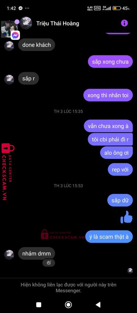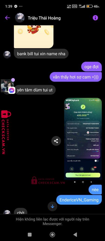 Scammer Alert: Võ Trường Thành Reported: March 7, 2025 Scammer Information Full Name: Võ Trường Thành Payment Gate: TECHCOMBANK Payment Account: MS00P05877406819918 Category: Marketplace scams Source: Checkscam Evidence Files Report Description lúc thanh toán thì rep rõ nhanh r từ từ biến mất và r block luôn bay 400k Comments Your comment Add Comment No comments yet. Be the first to share your experience with this scammer.