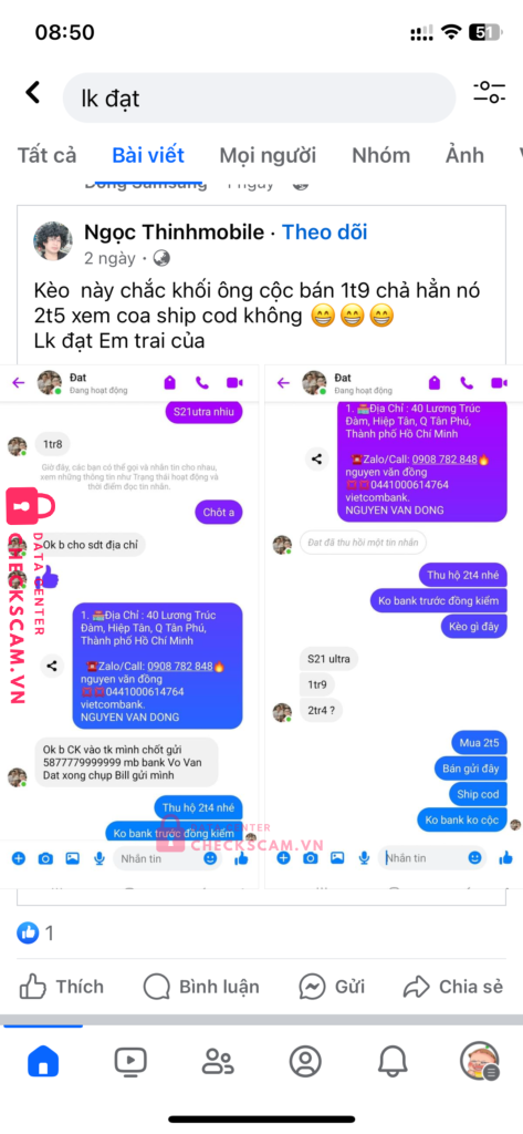 Scammer Alert: Võ Văn Đạt Reported: November 16, 2024 Scammer Information Full Name: Võ Văn Đạt Payment Gate: MB bank Payment Account: 5877779999999 Category: Marketplace scams Source: Checkscam Evidence Files Report Description Đăng bán xác đt yêu cầu ng mua ck cọc xong chặn Comments Your comment Add Comment No comments yet. Be the first to share your experience with this scammer.