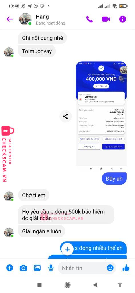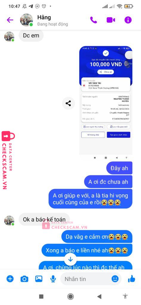 Scammer Alert: Võ Văn Tài Reported: November 16, 2024 Scammer Information Full Name: Võ Văn Tài Payment Gate: VP Bank Payment Account: 8149210506 Category: Marketplace scams Source: Checkscam Evidence Files Report Description Chuyển khoản làm hồ sơ vay tiền rồi bị chặn Comments Your comment Add Comment No comments yet. Be the first to share your experience with this scammer.