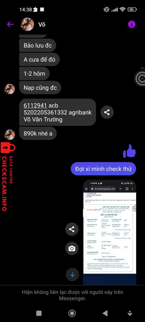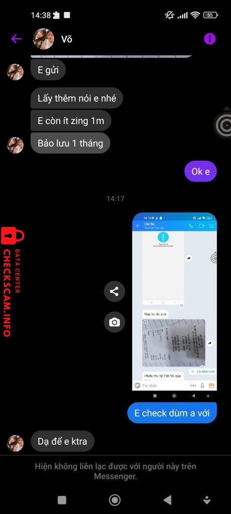 Scammer Alert: Vo Van Truong Reported: November 16, 2024 Scammer Information Full Name: Vo Van Truong Payment Gate: Acb bank Payment Account: 6112941 Category: Marketplace scams Source: Checkscam Evidence Files Report Description Lừa đảo gửi card zing đã qua sử dụng Comments Your comment Add Comment No comments yet. Be the first to share your experience with this scammer.