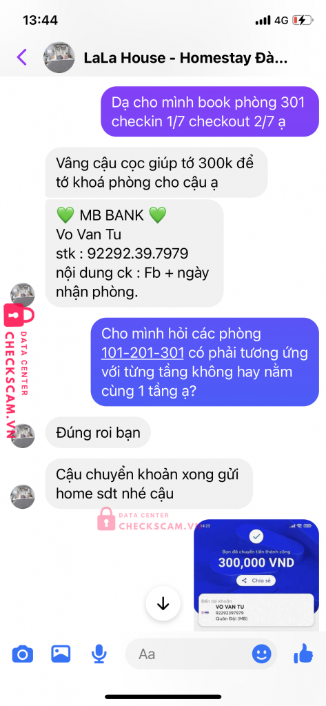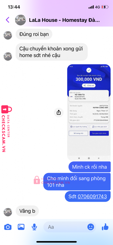 Scammer Alert: Vo Van Tu Reported: November 16, 2024 Scammer Information Full Name: Vo Van Tu Payment Gate: MB bank Payment Account: 92292397979 Category: Marketplace scams Source: Checkscam Evidence Files Report Description Giả mạo fanpage của homestay để lừa khách cọc tiền Comments Your comment Add Comment No comments yet. Be the first to share your experience with this scammer.
