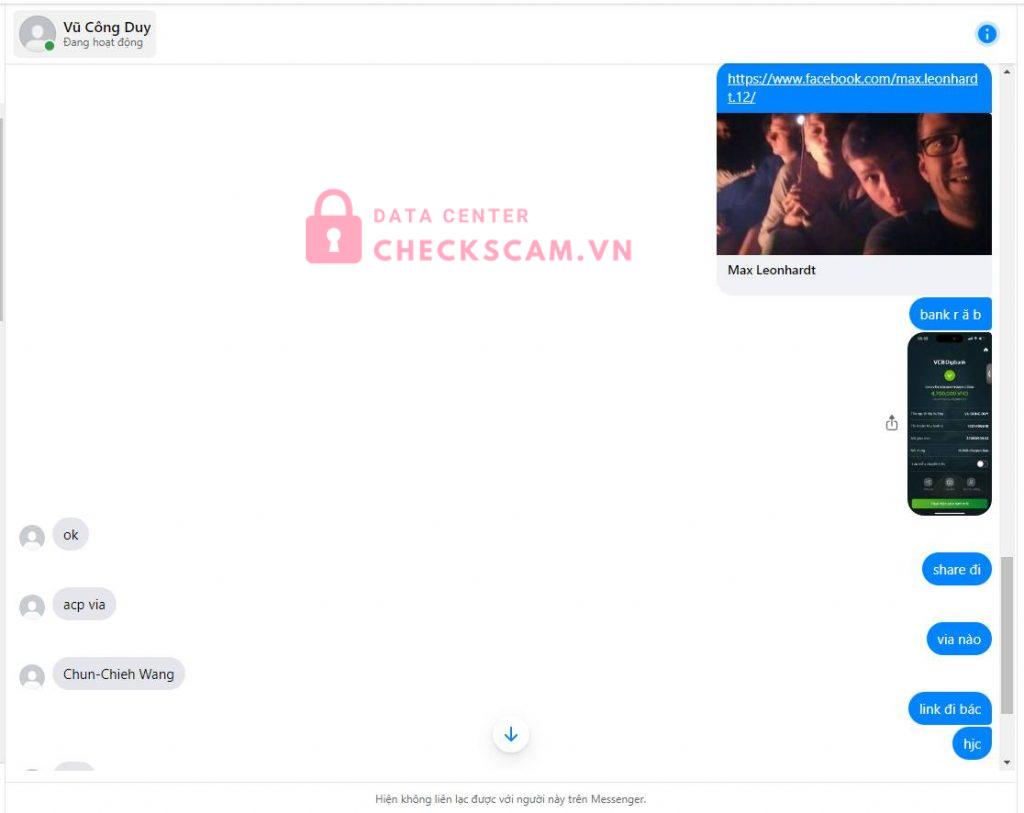 Scammer Alert: VU CONG DUY Reported: November 16, 2024 Scammer Information Full Name: VU CONG DUY Payment Gate: VIETCOMBANK Payment Account: 1031406618 Category: Marketplace scams Source: Checkscam Evidence Files Report Description Chuyển tiền xong block 5s luôn Comments Your comment Add Comment No comments yet. Be the first to share your experience with this scammer.