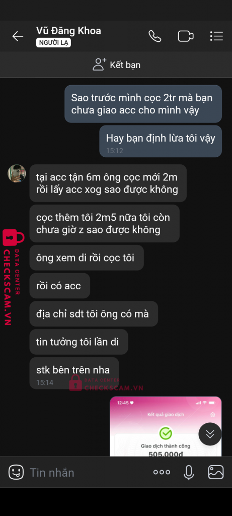 Hiện tôi đã tìm hiểu Vũ Đăng Khoa này chuyên đi lừa đảo tôi up grup thấy nhiều người kêu thằng này scam rất nhiều mong người chú ý thằng này.