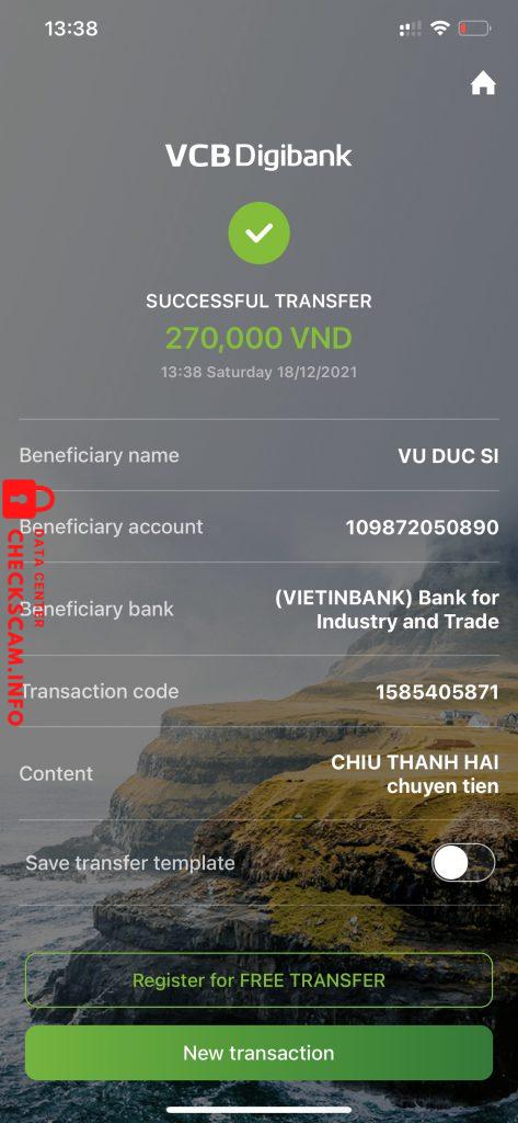 Scammer Alert: Vũ Đức Si Reported: November 16, 2024 Scammer Information Full Name: Vũ Đức Si Payment Gate: Vietinbank Payment Account: 109872050890 Category: Marketplace scams Source: Checkscam Evidence Files Report Description Lừa mua đảo mua bưởi kiêu mua bưởi ăn mình gửi thì lại nói k phải bắt trả tiền Comments Your comment Add Comment No comments yet. Be the first to share your experience with this scammer.